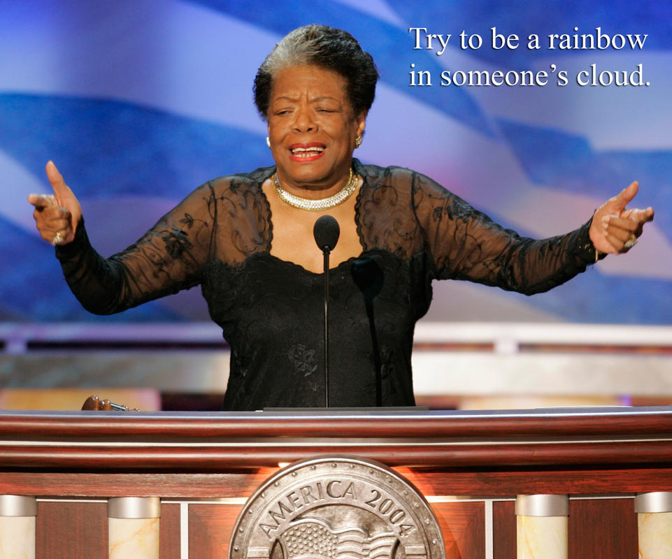 My favorite of her poems, Still I Rise! I know has really helped a lot of people going through some kind of difficult transition with life. We’d used this poem as a theme during shelter visitation with abused teenagers, for women going through counseling for some kind of battery or addiction and also during a group discussion to help boost self-esteem and self- confidence.